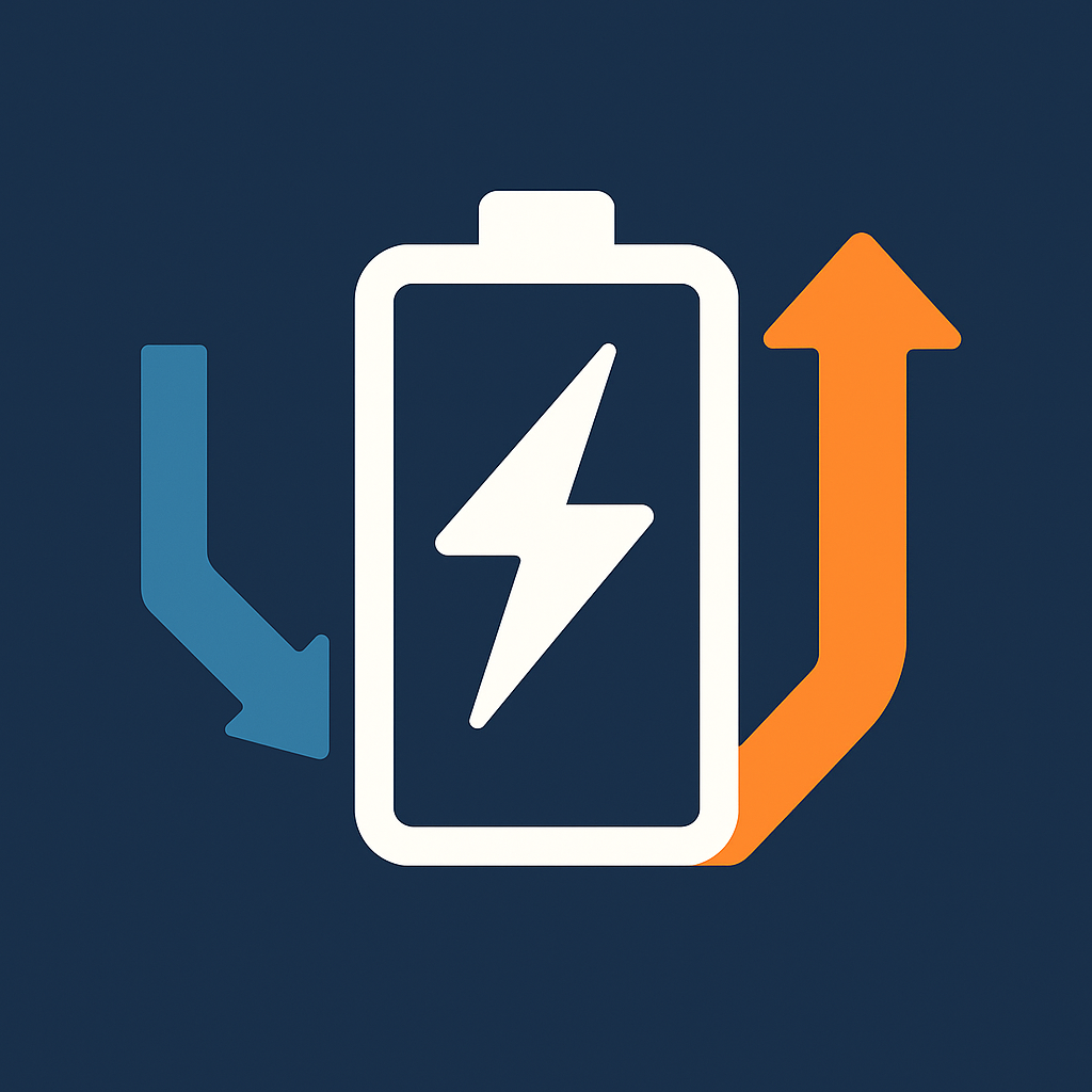 Gdy zapotrzebowanie na prąd wzrasta lub źródło energii przestaje działać, następuje rozładowanie — energia zgromadzona w magazynie przekształcana jest z powrotem w prąd elektryczny, który zasila urządzenia lub sieć.